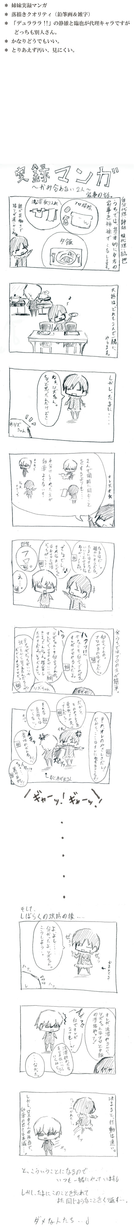 ちなみに、新羅とセルティの場合、ラブレスパロは成り立たないと思います。まず、セルティに戦闘機は無理だし、確かにサクリファイスにしたら無敵かもしれないけれど、セルティを犠牲にして戦うなんて新羅には出来ないでしょう。だが、新羅が戦闘機の場合の戦いはちょっと見てみたい。きっと四字熟語攻めだ。(笑)